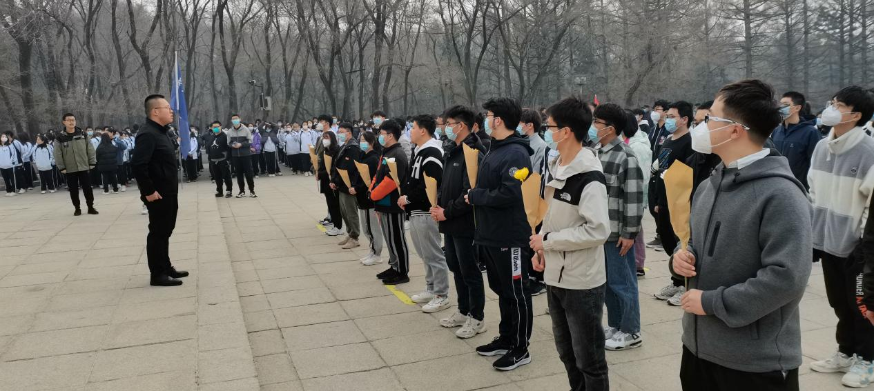 活动伊始,学院团委负责人孙鹏博老师进行讲话,鼓励同学们要擦亮红色底色,传承红色基因,赓续红色血脉,从革命先烈的英雄事迹中汲取奋进的力量。随后,学院团委副书记王俊博同学介绍了长春解放纪念碑的历史由来。讲话结束后,全体人员庄严肃立,集体默哀三分钟,缅怀先烈。默哀结束后学生代表依次上前献花鞠躬。最后,全体同学在解放碑前重温入团誓词,初心不改,对革命先烈表达最崇高的敬意。