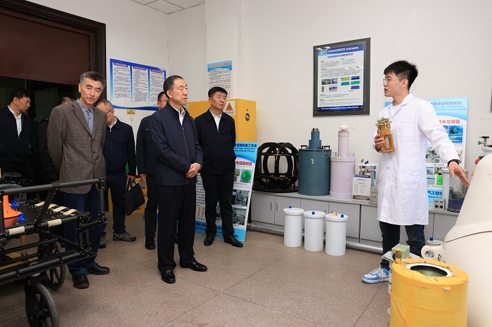 党委书记邱增凯、副院长林婷婷等陪同下参观了地球信息探测仪器教育部重点实验室,调研了学院自主研制的主动场磁共振探测仪、海洋电磁震源、超导全张量磁梯度测量系统、地震前兆气体光学检测设备、机载高分辨率电磁探测系统等,听取了我院研制的装备在复杂地质条件矿产资源勘察、水源性地质灾害隐患防治探测、电磁卫星地震前兆预测等方面的应用情况汇报。