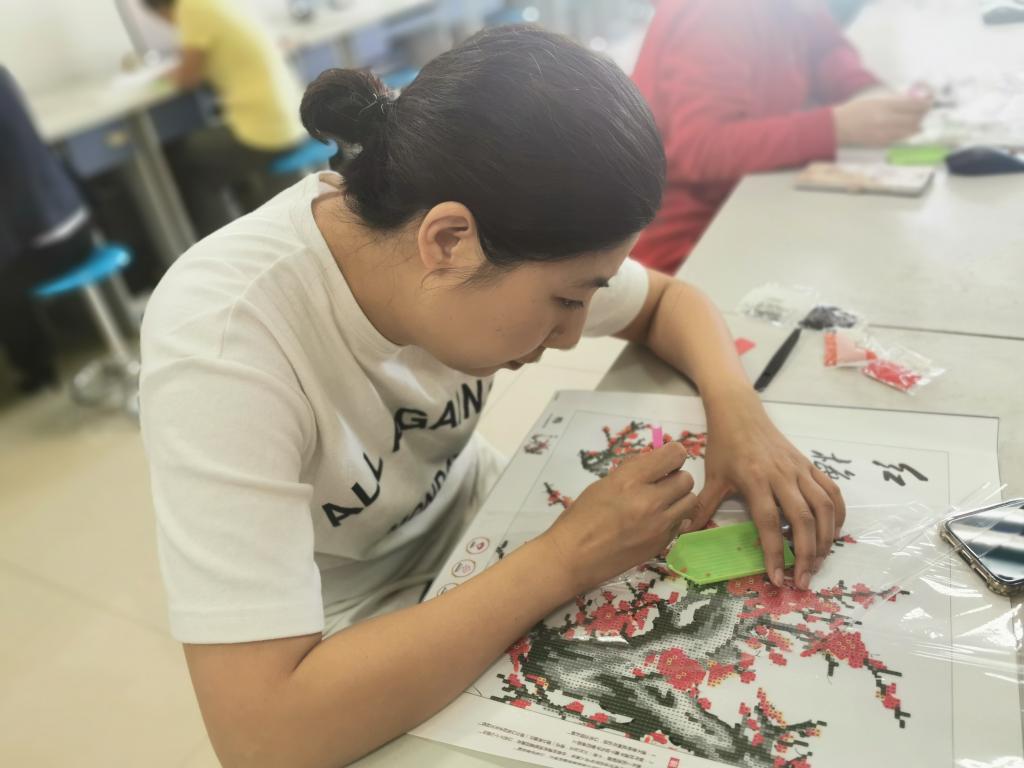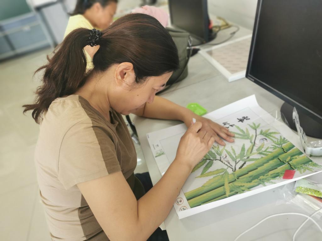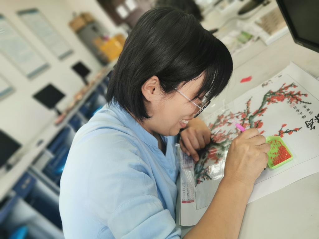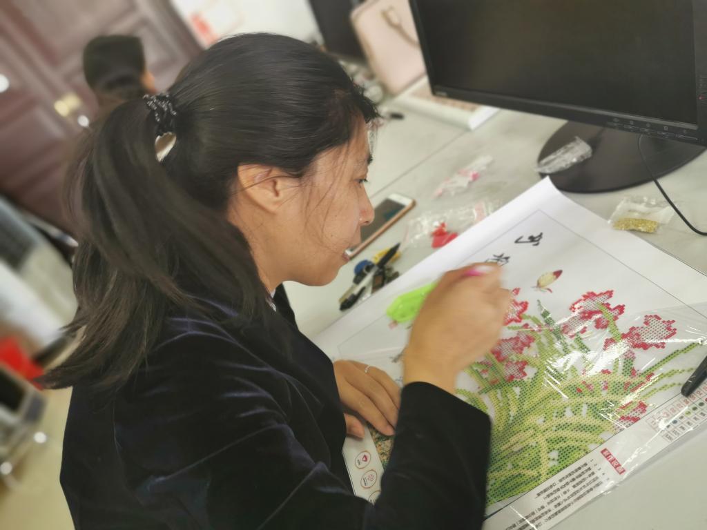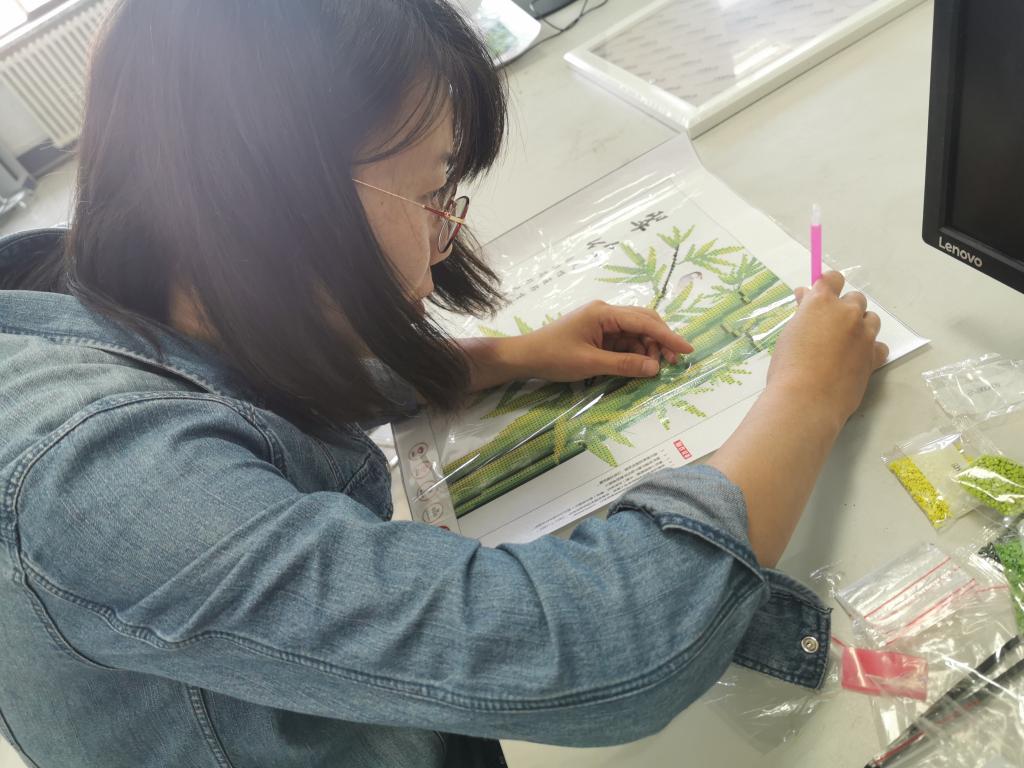 为庆祝新中国成立70周年,向国庆献礼,为祖国祝福,9月29日91吃瓜 全体女教职工在地质宫412室举办了“钻石画手工艺品,向祖国献礼”活动。