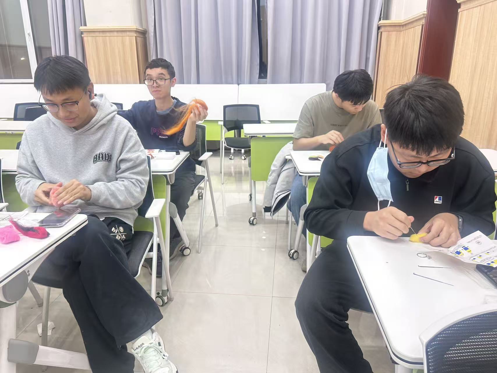 制作过程中,同学们不时交流心得、互相帮助,分享创作灵感和制作技巧。有同学感叹道:“难得有这样慢下来、专注做一件事的机会,感觉特别解压。”也有同学表示:“看着手中的小作品一点点成型,很有成就感,这种专注的状态让人感到很平静。”欢声笑语中,同学们不仅收获了精美的手工作品,更收获了放松的心情和珍贵的友谊。