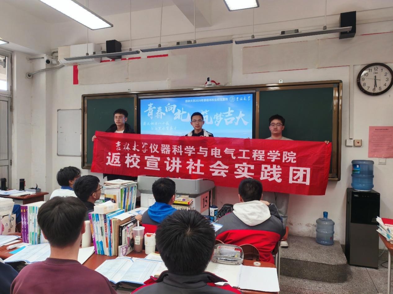 本次宣讲团队由吉大2025级仪器类专业王治杰担任队长,联合同专业牛沫楮、机械与航空航天工程学院张方宇共同组建。三名从榆林考入吉大的学子,怀揣对母校的感恩与青春担当,一心搭建吉大与家乡高中的沟通桥梁,全力推介学校百年办学底蕴与仪电学院优质学科资源。活动前期团队筹备细致,提前对接当地高中敲定流程细节,明确分工、制定安全预案,潜心打磨贴合高三学子需求的宣讲素材,兼顾专业解读与真情感悟,为活动顺利开展筑牢基础。
