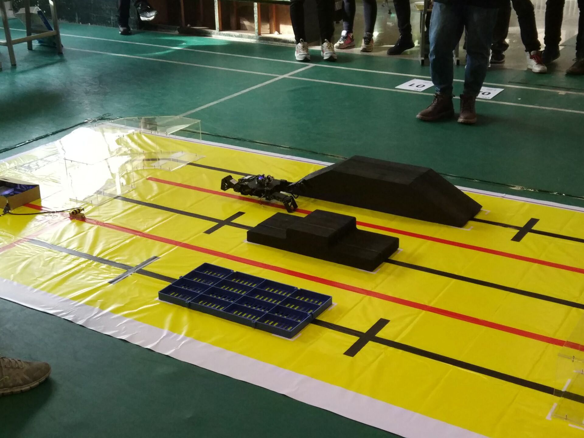 南岭校区体育馆正式开始,现场人员涌动满心期待,来自二十所高校的上百支队伍到达了比赛现场。开幕式结束后,各参赛项目组进行实地调试。根据比赛规则各参赛组抽签按序进行比赛,整个比赛从上午9:00持续到下午4:30,比赛过程紧张而又精彩,一场又一场激动人心的角逐之后,大赛终于告一段落。随后举行了闭幕式,宣布本次比赛成绩,并由嘉宾为获奖队伍颁奖。大赛以机器人为载体,分为八个项目。其中,我院无差别1vs1组滕泽远组取得了冠军,轻量组韩润泽组取得了季军,六足组李昂组、飞机组杨思恩组、轻量组向梦航组以及助老服务机器人陈浩组共6组获得吉林省一等奖。而这些优异的成果都离不开老师的细心教导,离不开学生们的艰苦奋斗。许多备赛的日日夜夜,我院各实验室灯火通明,可以说是“台上一分钟,台下十年功”。值得肯定的是其中一些机器人小组刚刚接触机器人不久,他们不畏艰辛,经过了前期精心充足的准备,在本次比赛中也取得了相当优异的成绩!
