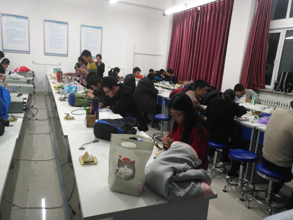 中心校区李四光实验楼447实验室进行了面向2017级新生的第四期基础培训。培训内容包括掌握呼吸灯电路原理并自主完成电路焊接以及对第三次培训作品的检测验收,由我院科协的2016级相关负责人组织了此次培训。